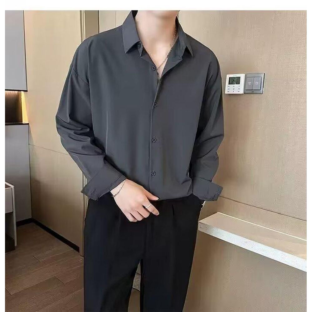 Men's Drapey Ice Silk Short-sleeved Wrinkle-resistant Shirt
