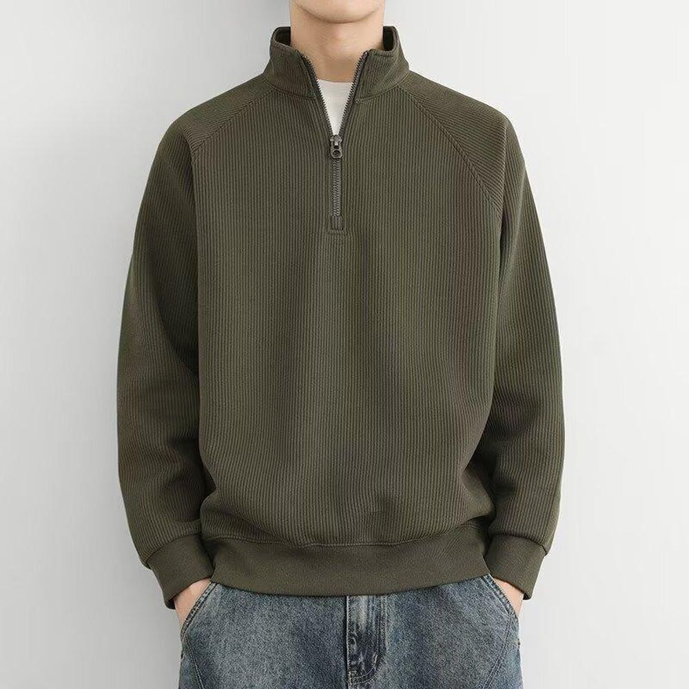 Men's Fleece-lined Half-zip Stand Collar Sweatshirt Hoodie