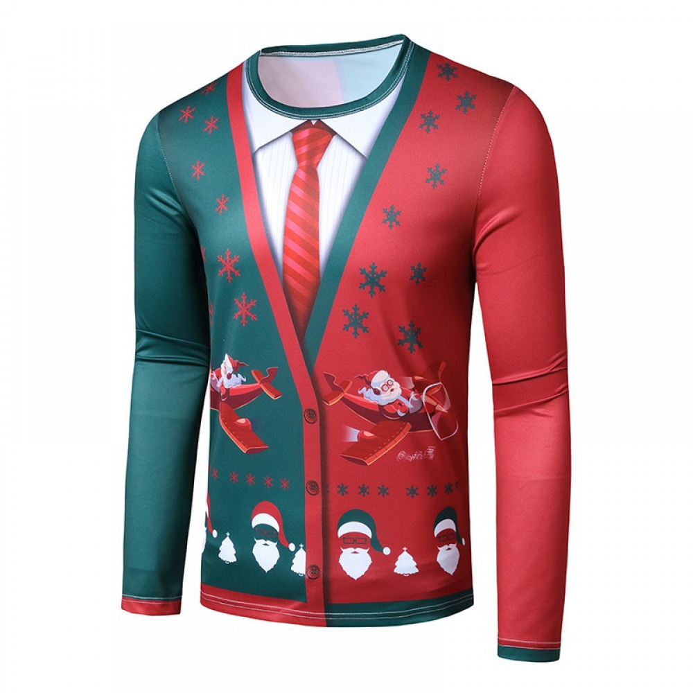 New 3D Personality Printing Fashion Men's Christmas Long-Sleeved T-Shirt