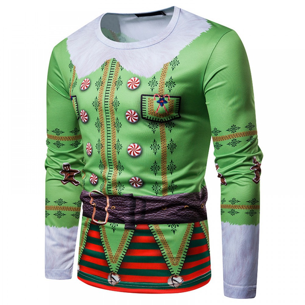 New 3D Personality Printing Fashion Men's Christmas Pattern Long-Sleeved T-Shirt
