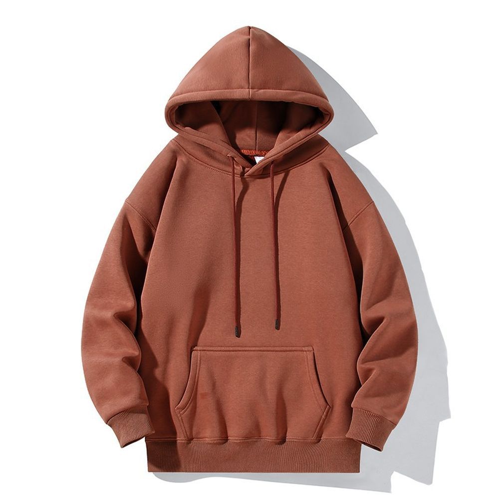 Retro Street Solid Color Hooded Sweatshirt Winter Thickened Loose Outfit Jacket