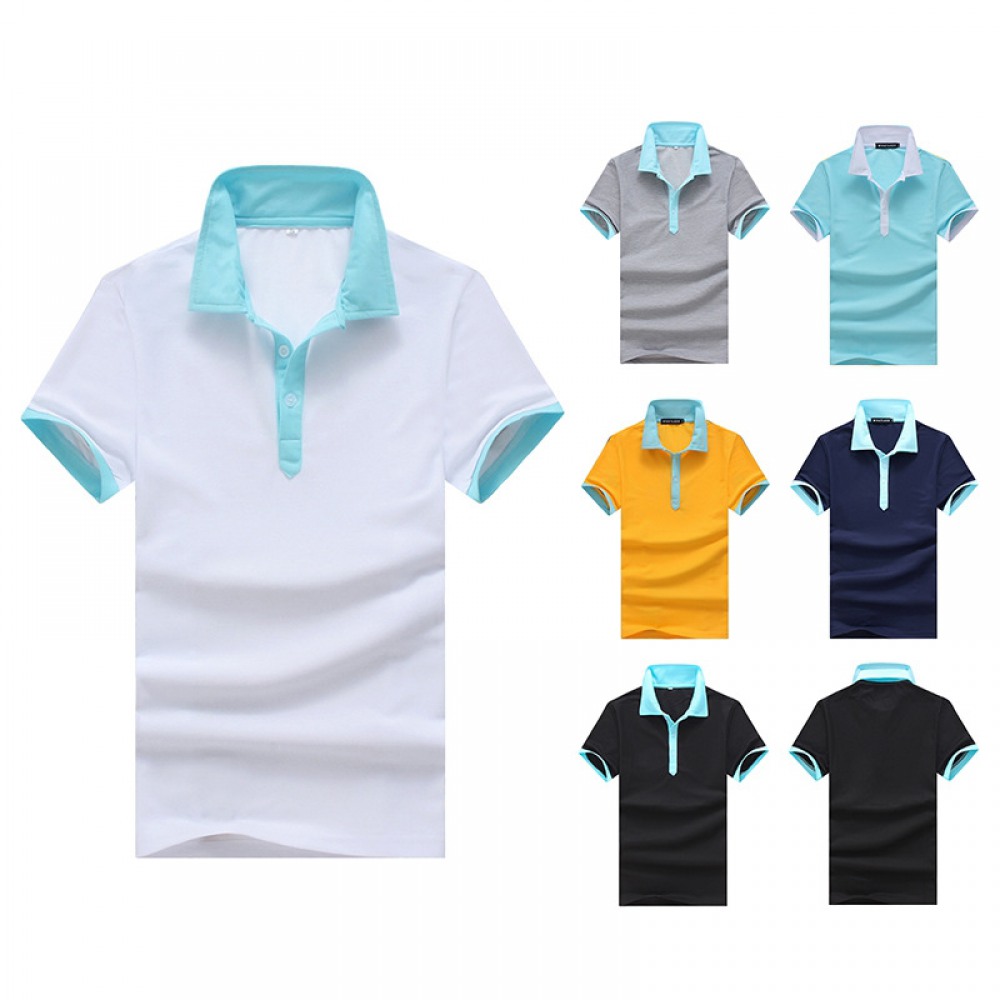 Summer Men's Personality Contrast Color Lapel Short-Sleeved T-Shirt