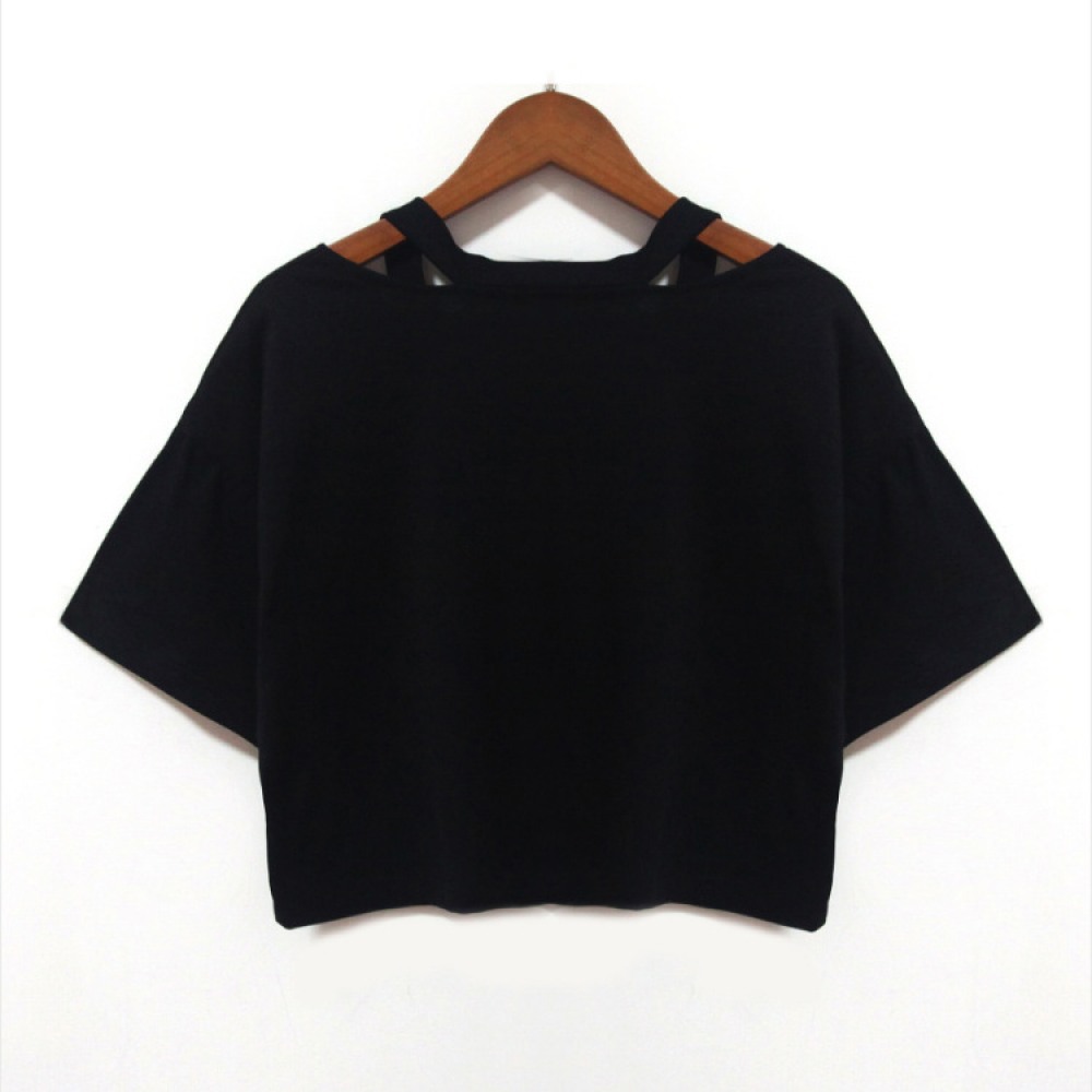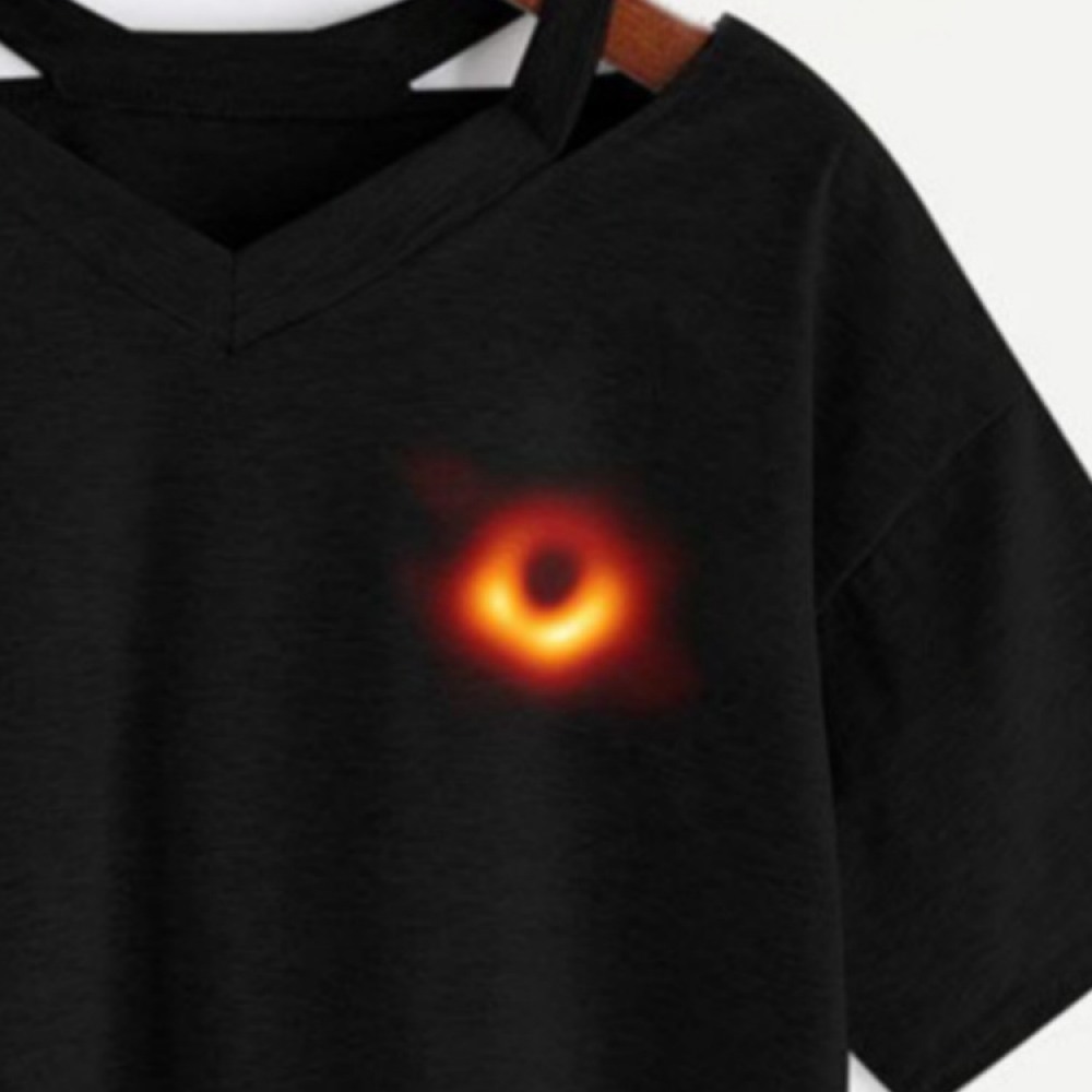 V-Neck Cutout Black Hole Print Short T-Shirt