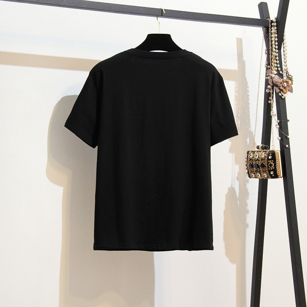 Extra Large Size Women's Fat Summer Short-Sleeved T-Shirt With Embroidery Loose Plus Size Top