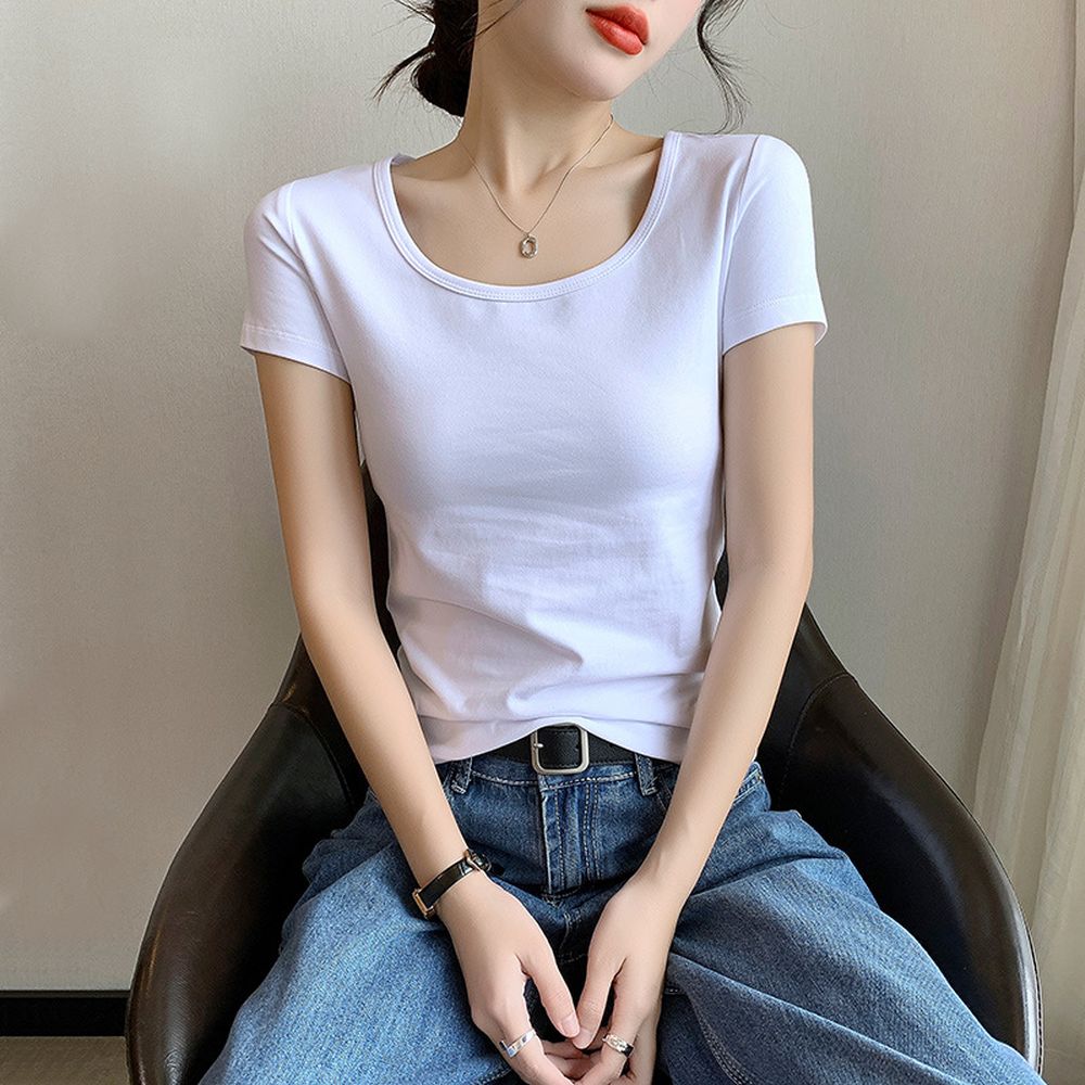 Women's Square Neck Mid Sleeve T-shirt Slim Short Top