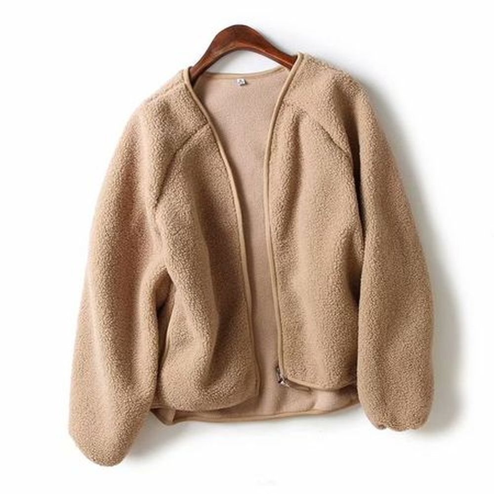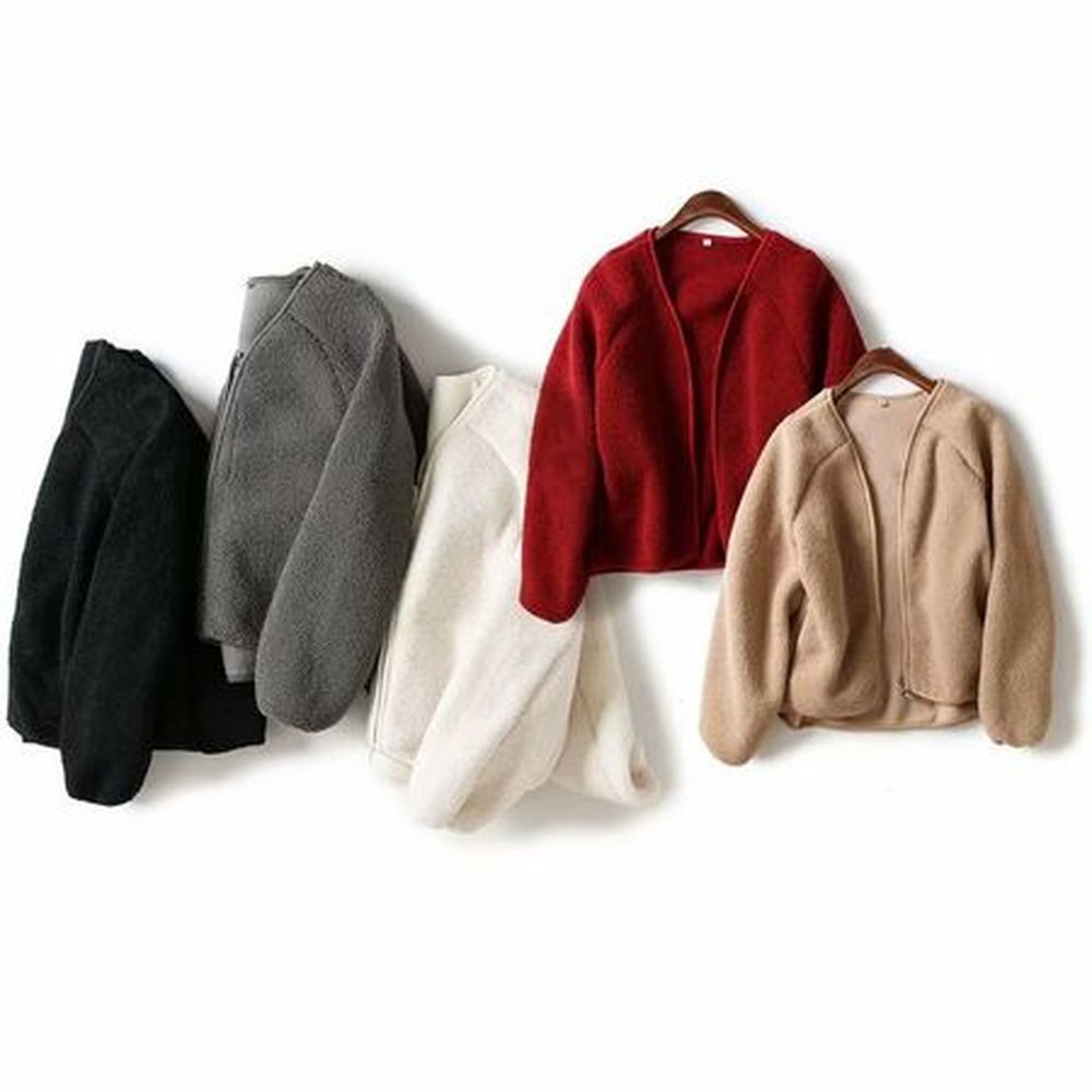 Women's Winter Polar Fleece Zipper V-Neck Cardigan Top