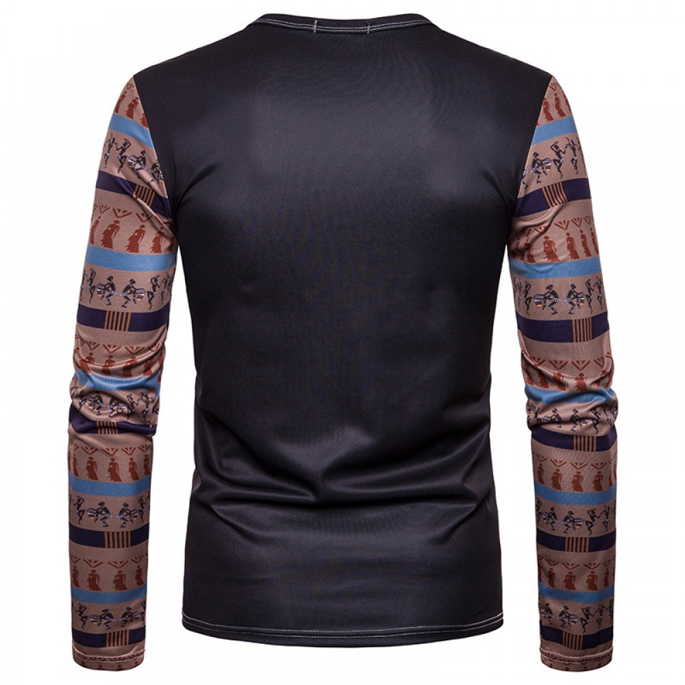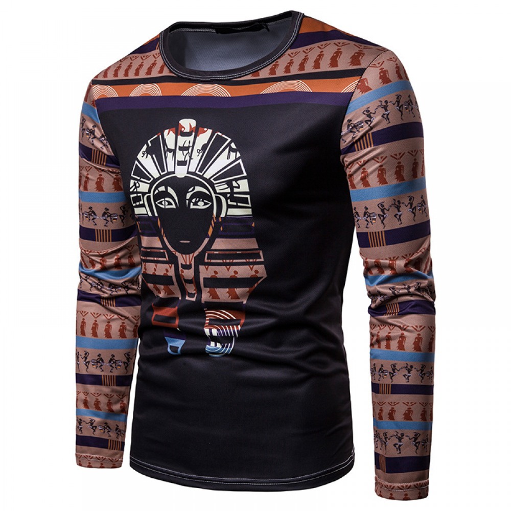 Men's Cartoon Character Avatar Printing Round Neck Long-Sleeved T-Shirt