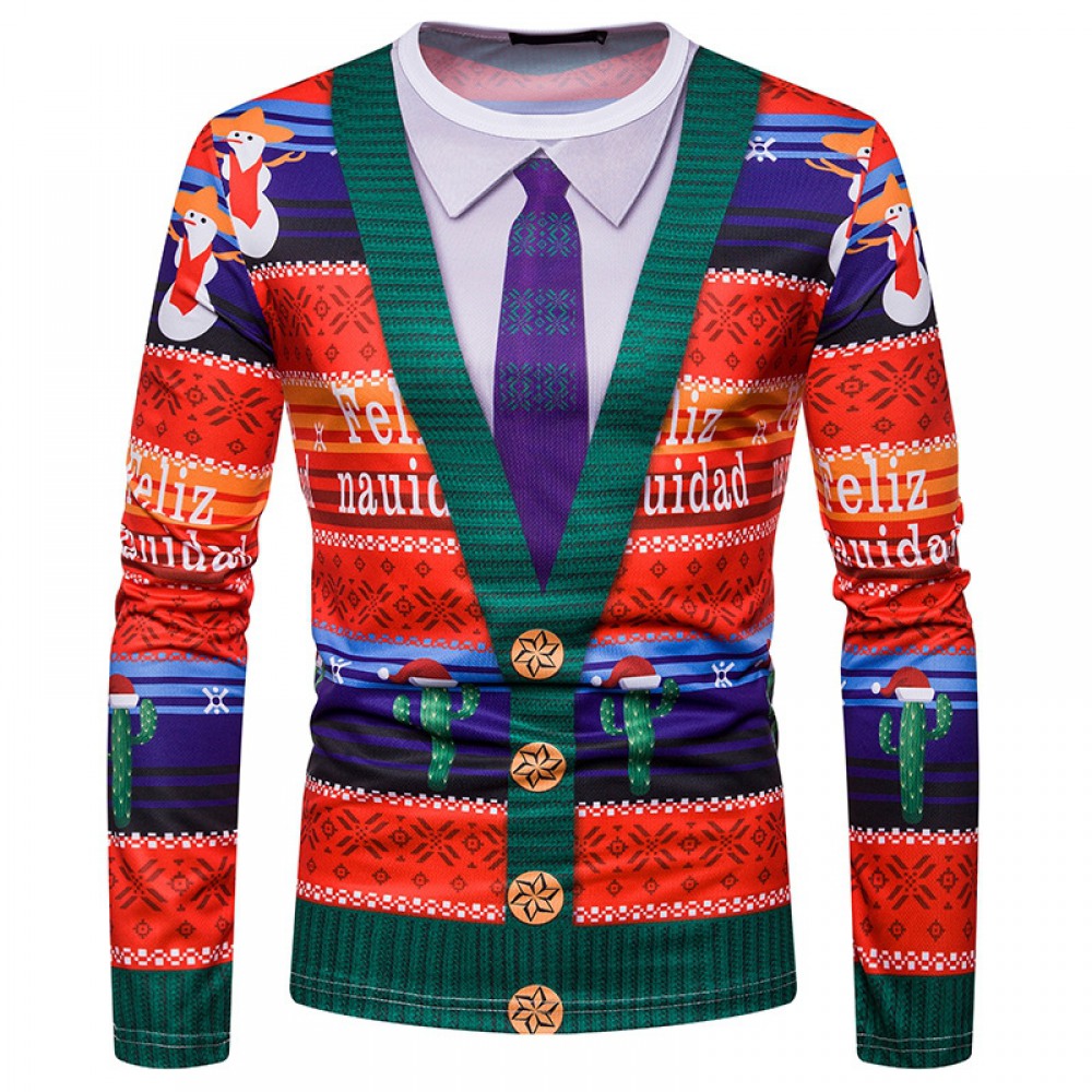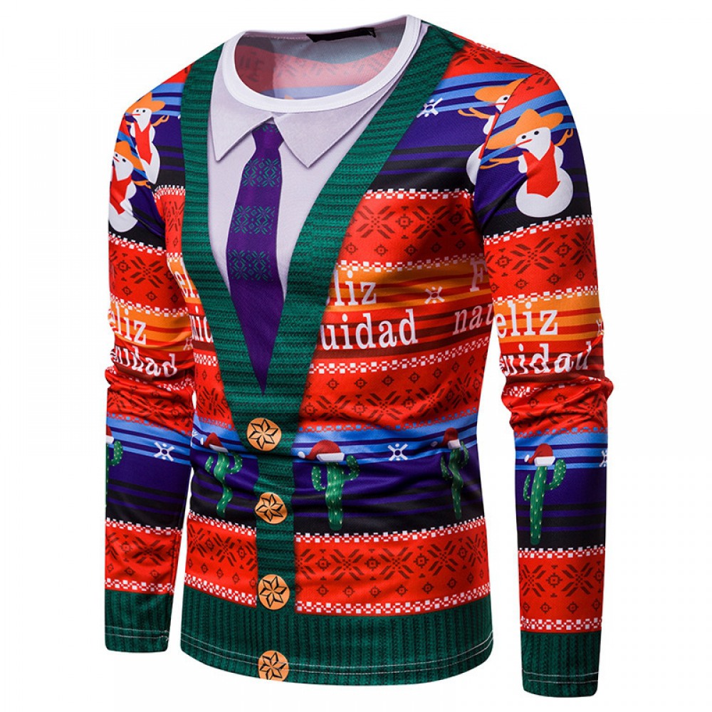 New Festive Santa and Villain Jacquard Men's Printed Long-Sleeved T-Shirt