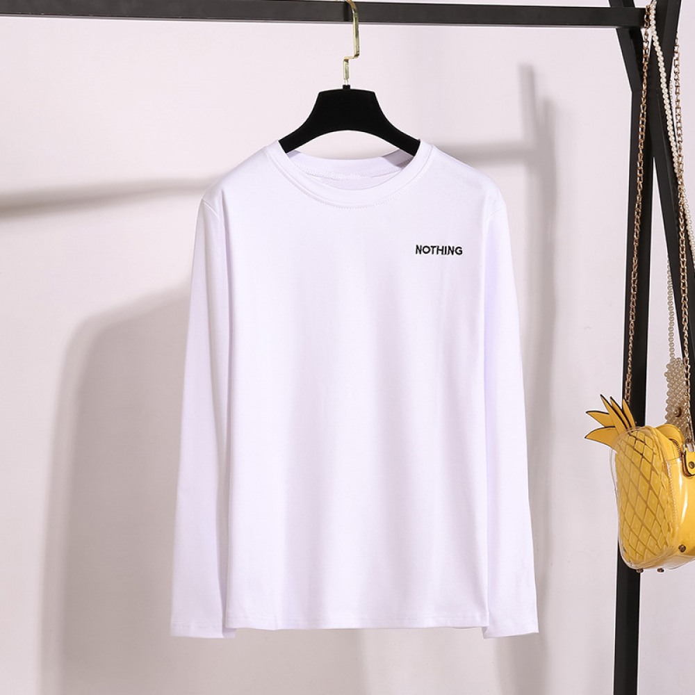 Plus Size Bottoming Shirt Female Fat Sister New Loose Round Neck Embroidered Long Sleeve T-Shirt for Women