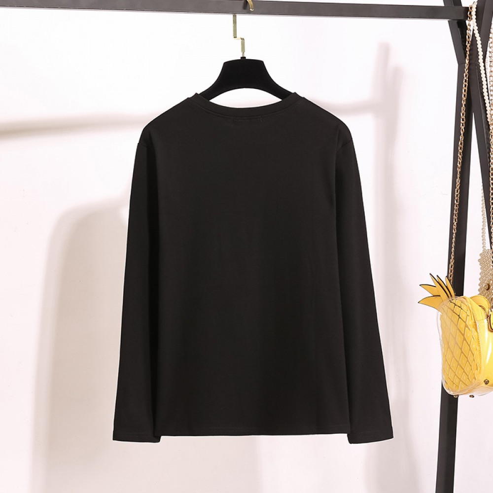 Autumn and Winter New Extra Plus Size Women's Fat Thin Round Neck T-Shirt Loose Long-Sleeved Bottoming Shirt