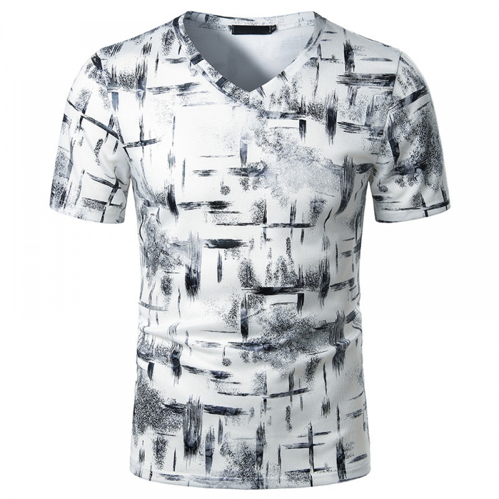 Summer Men's Fashion Casual Gradient Short-Sleeved V-Neck Short-Sleeved T-Shirt